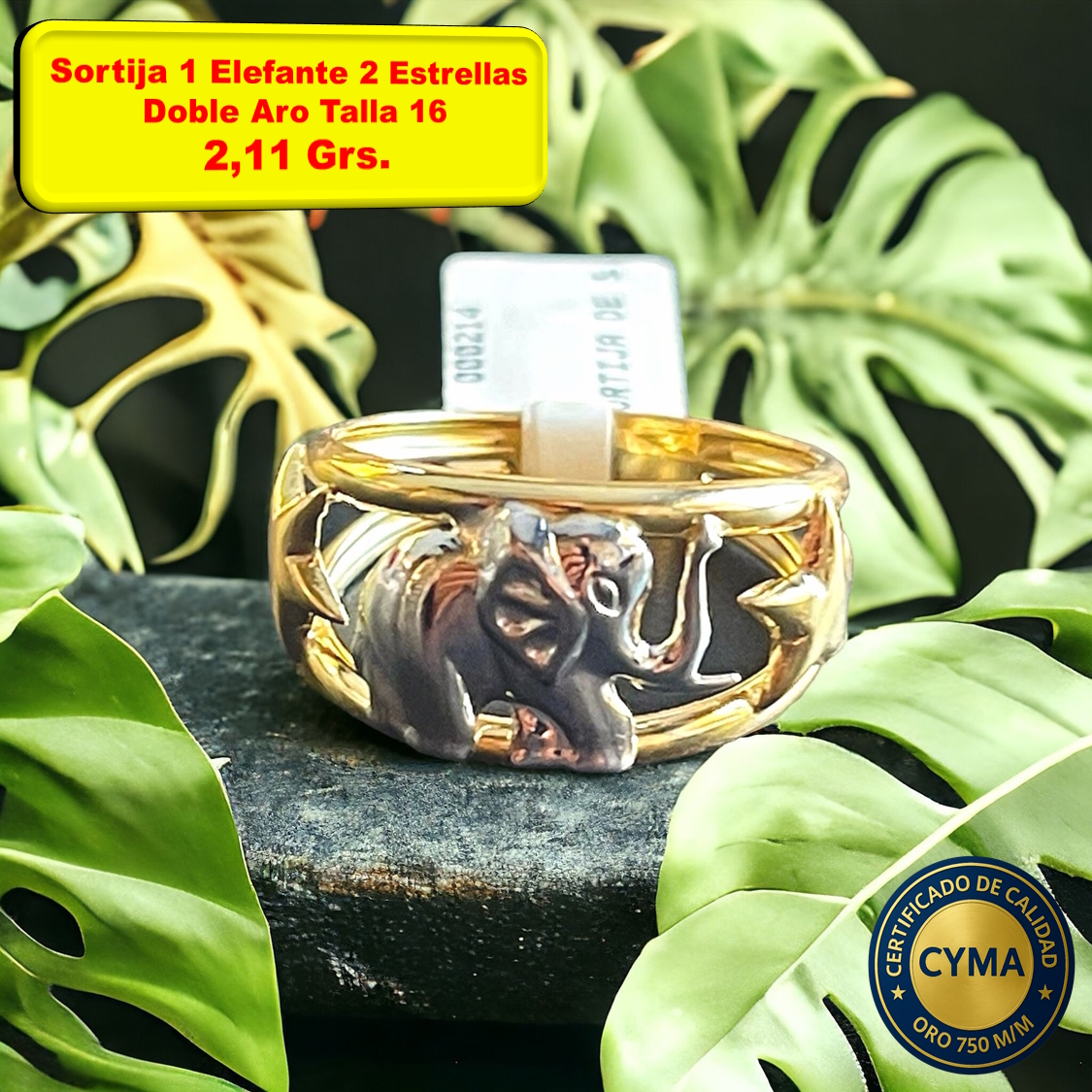 SORTIJA ELEFANTEDesde 297,95 € hasta 311,03 €Sortija 1 Elefante y 2 Estrellas con Doble Aro, Oro 18 Kilates