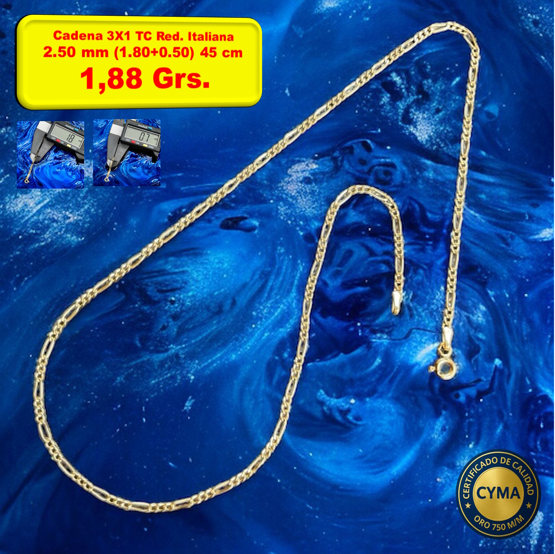 CADENA 3X1 TC REDDesde 273,24 € hasta 358,99 €Cadena 3×1 TC Redondeada Italiana Grosor: 2.50 mm Oro 18 Kilates