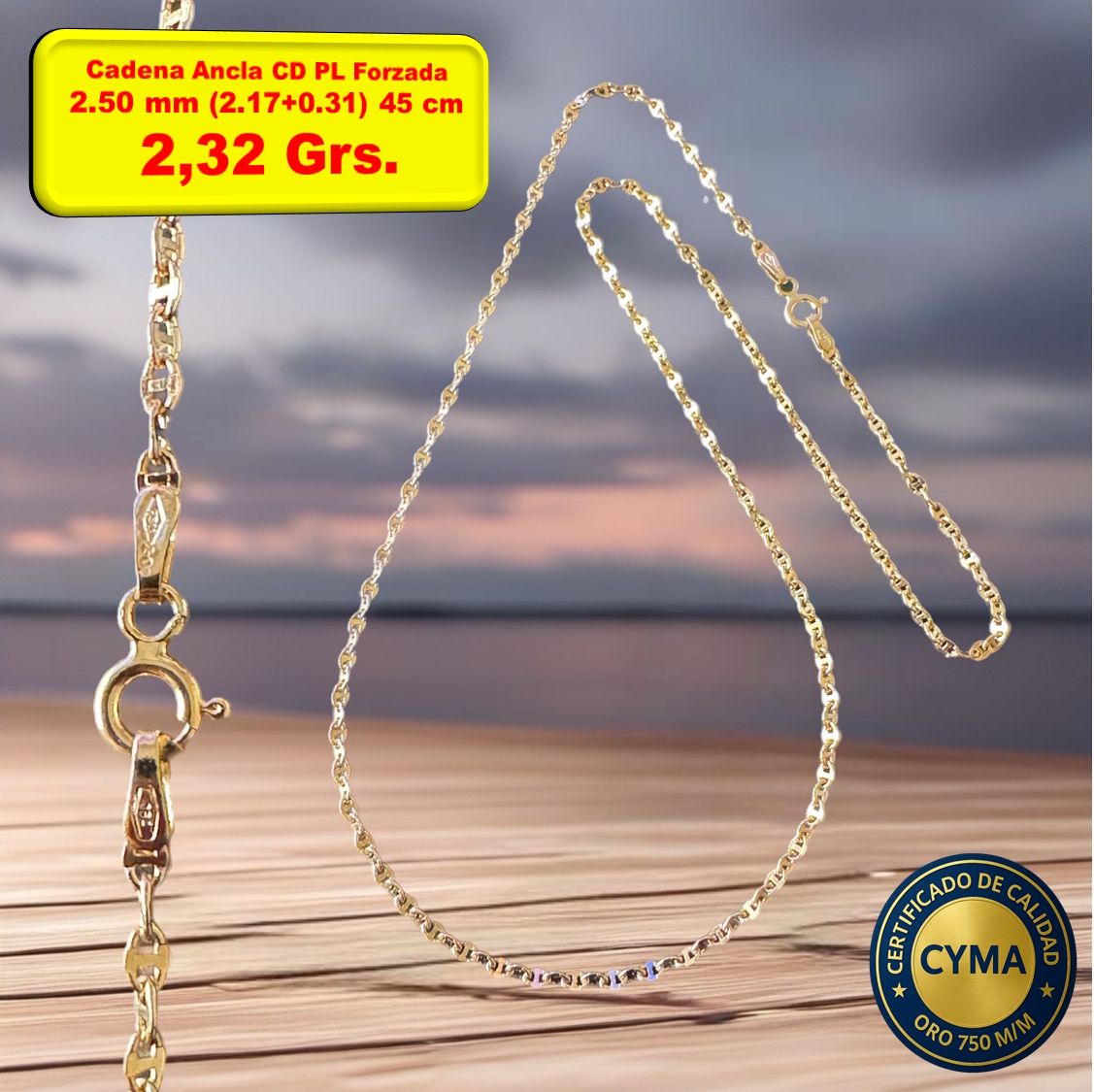 CADENA ANCLA CD PL FORZADADesde 337,19 € hasta 382,24 €Cadena Ancla CD PL Forzada Italiana Grosor : 2.50 mm Oro 18 Kilates
