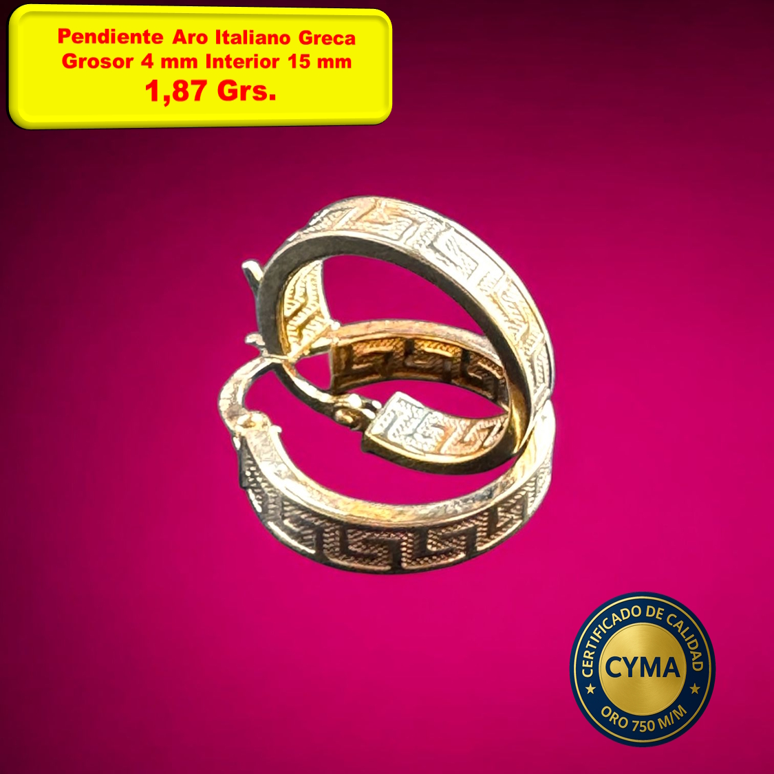 PENDIENTE ARO 18 KilatesDesde 200,57 € hasta 353,18 €Pendiente Aro Italiano con Greca Grosor 4.00 mm Oro 18 Kilates