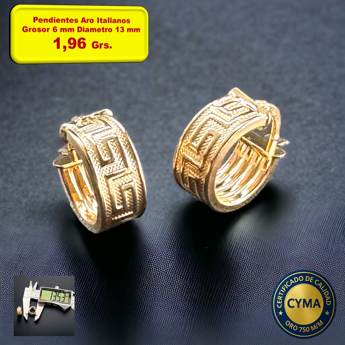 PENDIENTES ARO ITALIANOSDesde 436,02 € hasta 857,51 €Pendiente Aro Italiano con Greca Grosor 8.00 mm Oro 18 Kilates
