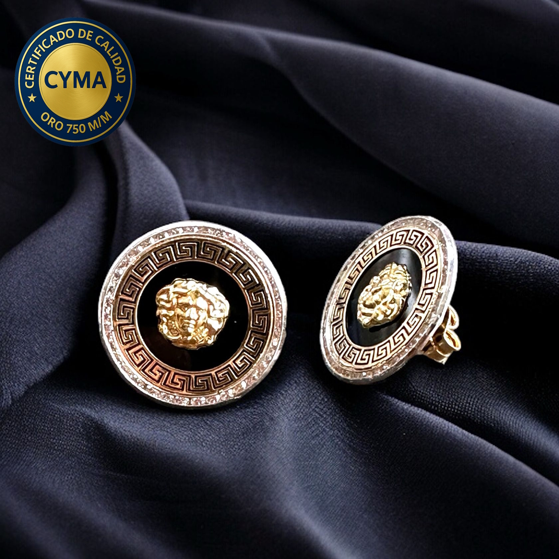 PENDIENTE MEDUSA ÓNIXDesde 305,94 € hasta 638,75 €Pendiente Medusa con Ónix. Greca y Orla de Circonitas Oro 18 Kilates Opción de colgante a Juego.