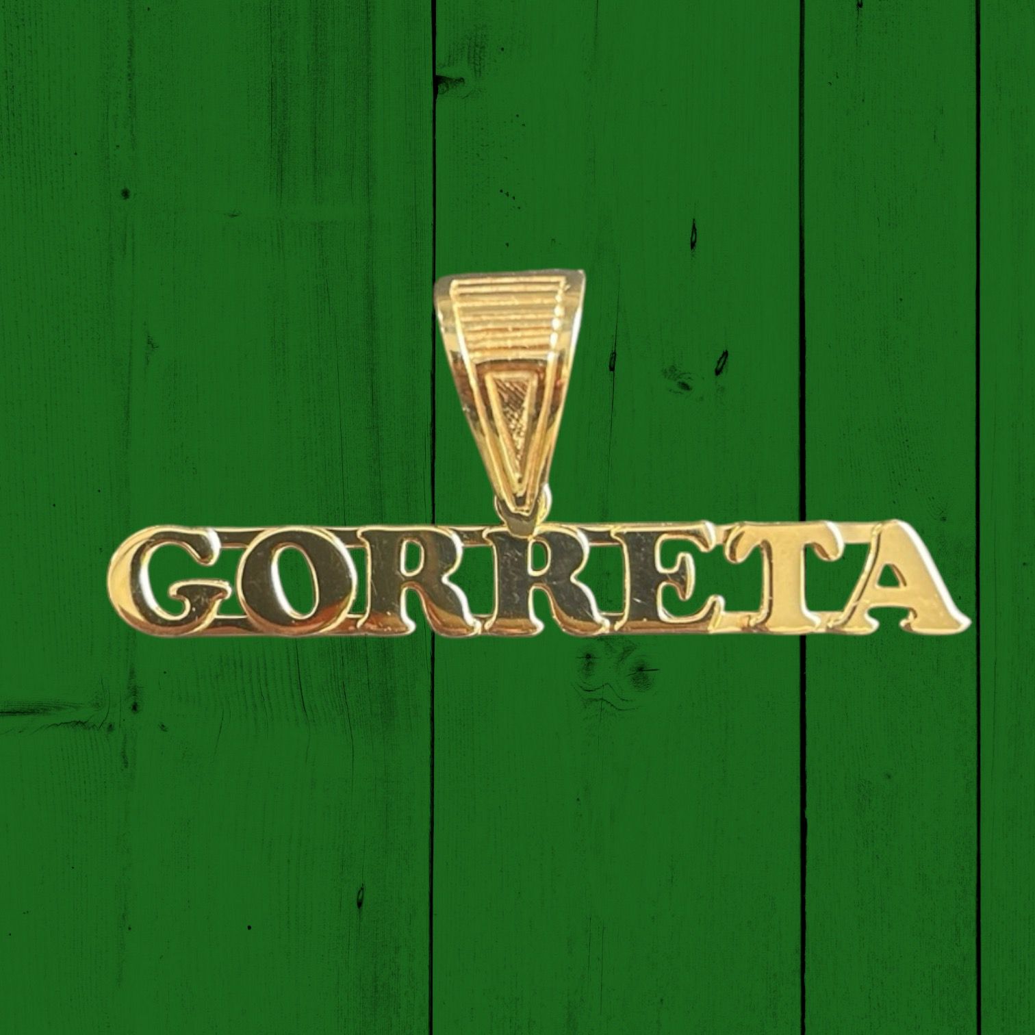 Colgante Nombre con Asa central para pase de collar de 4.00 mm Oro 18 Kilates. Se fabrican todos los nombres.