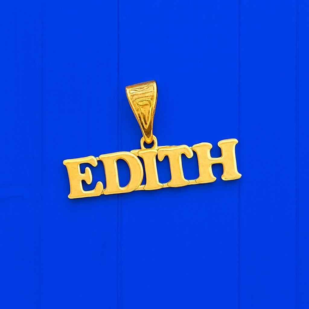 Colgante Nombre con Asa central para pase de collar de 5.00 mm Oro 18 Kilates. Se fabrican todos los nombres.