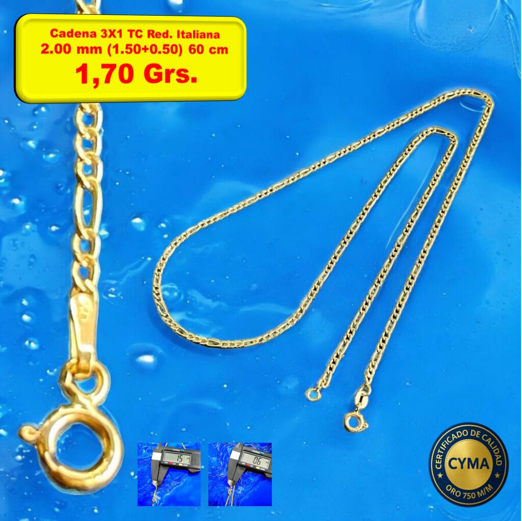 CADENA TRÉBOLDesde 168,59 € hasta 188,94 €Cadena Trébol Maciza Italiana, Grosor: 1.75 mm Oro 18 Kilates.