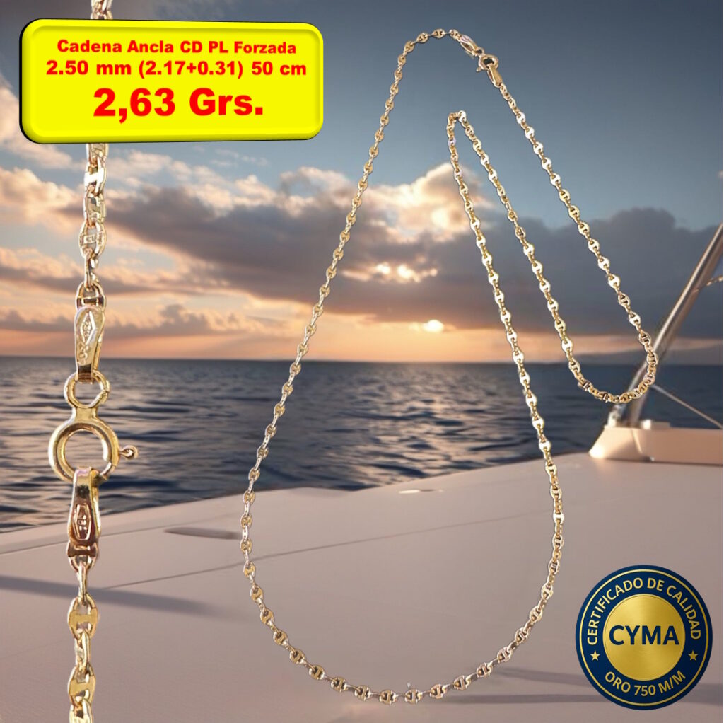 Cadena Ancla CD PL Forzada Italiana Grosor : 2.50 mm Oro 18 Kilates