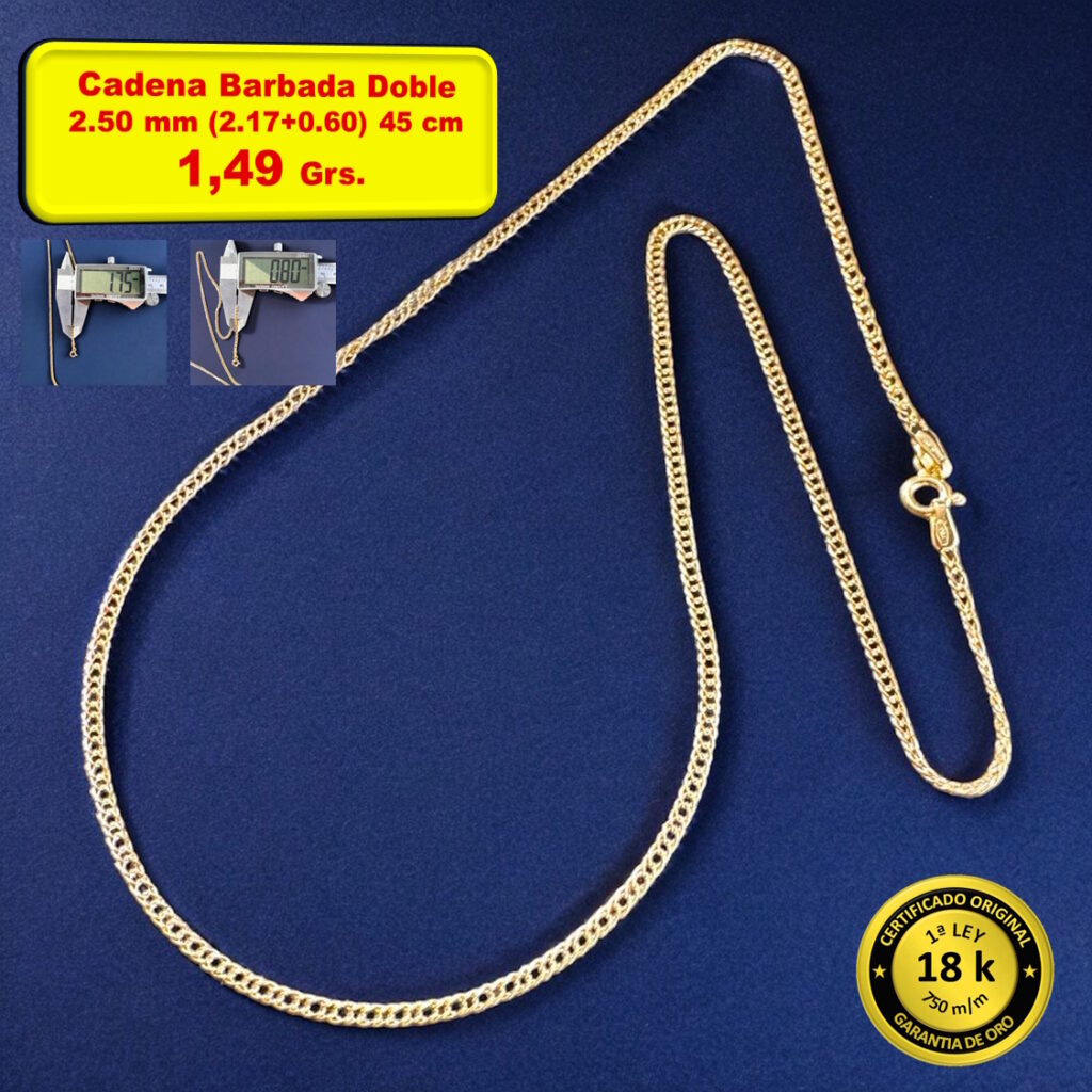 Cadena Barbada Doble Italiana Grosor : 2.50 mm , Oro 18 Kilates.