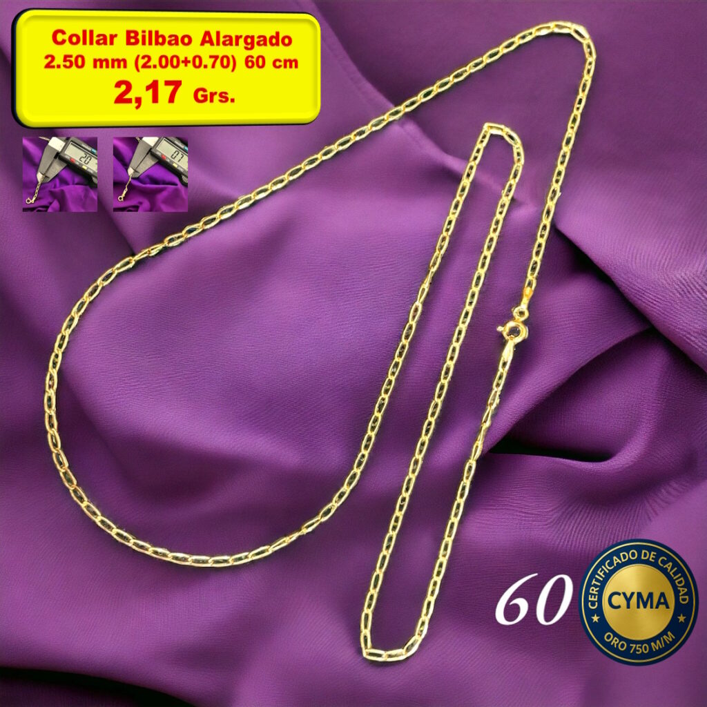 CADENA BILBAO ALARGADADesde 161,33 € hasta 225,28 €Cadena Bilbao Alargada Italiana Grosor: 2.00 mm Oro 18 Kilates