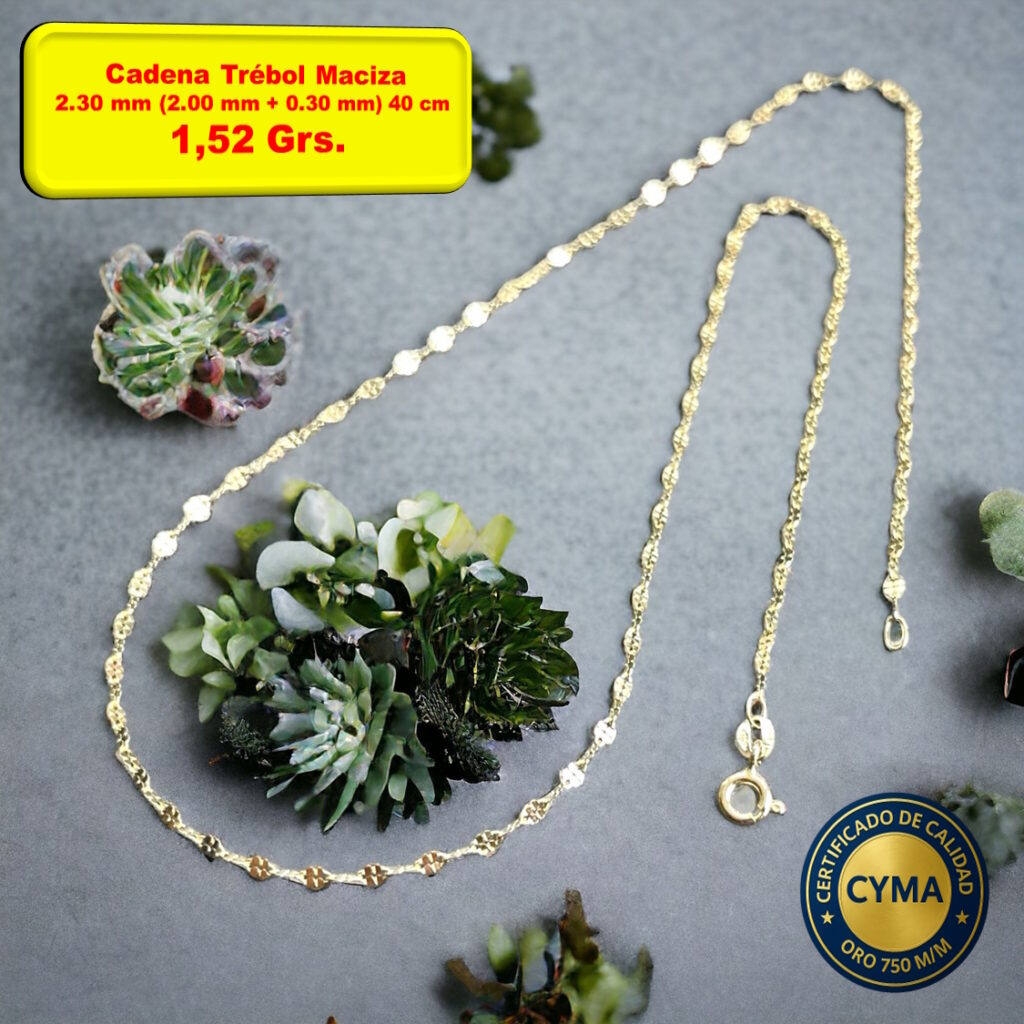 CADENA TRÉBOLDesde 168,59 € hasta 188,94 €Cadena Trébol Maciza Italiana, Grosor: 1.75 mm Oro 18 Kilates.