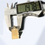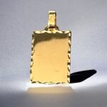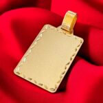 Colgante Chapa identidad Rectangular Macizo Oro 18 Kilates. Acto para grabación de fotografía