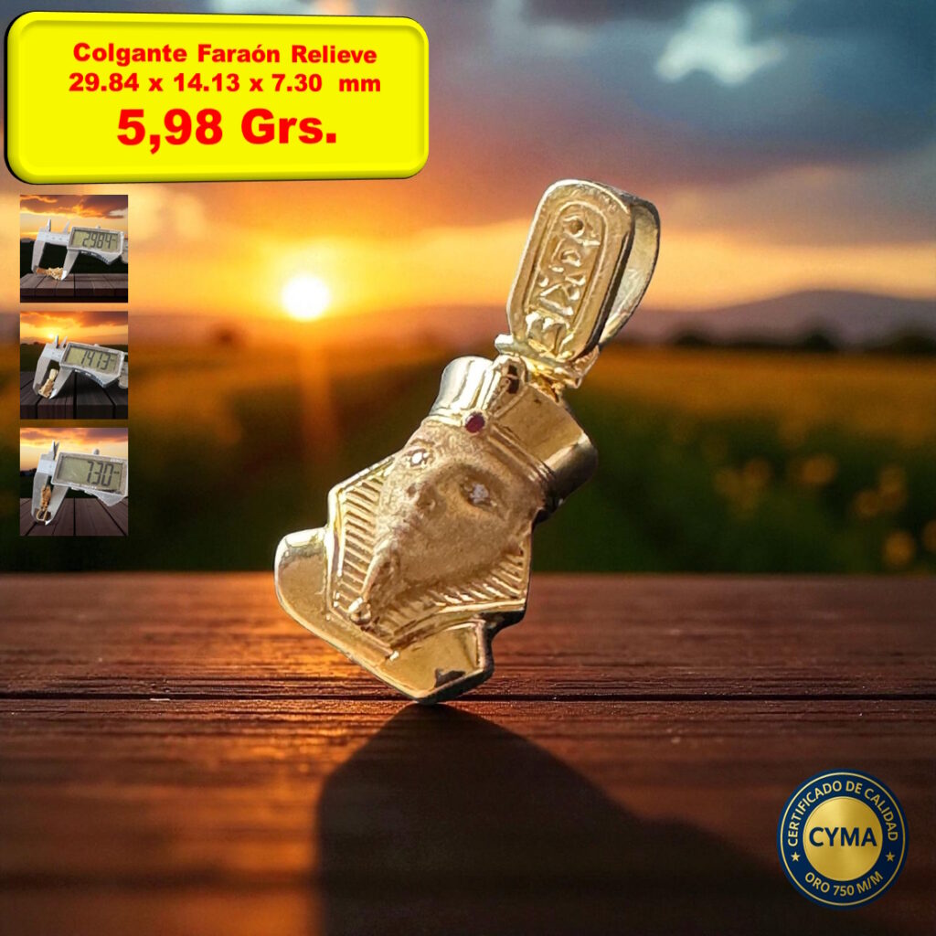 Colgante Faraón Relieve Macizo Oro 18 Kilates.