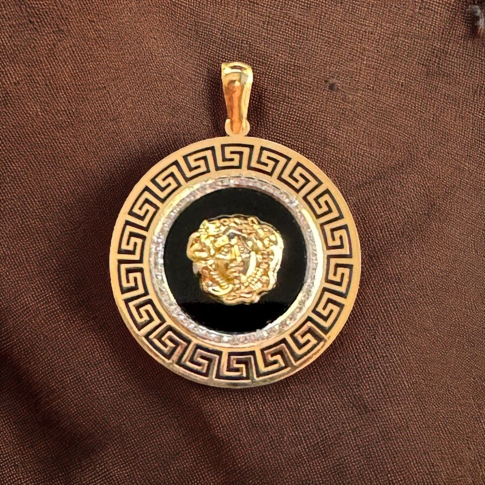 Desde 441,83 € hasta 811,00 €Colgante Redondo Medusa con Ónix, Greca y Orla de Circonitas 28.41 mm Oro 18 Kilates.
