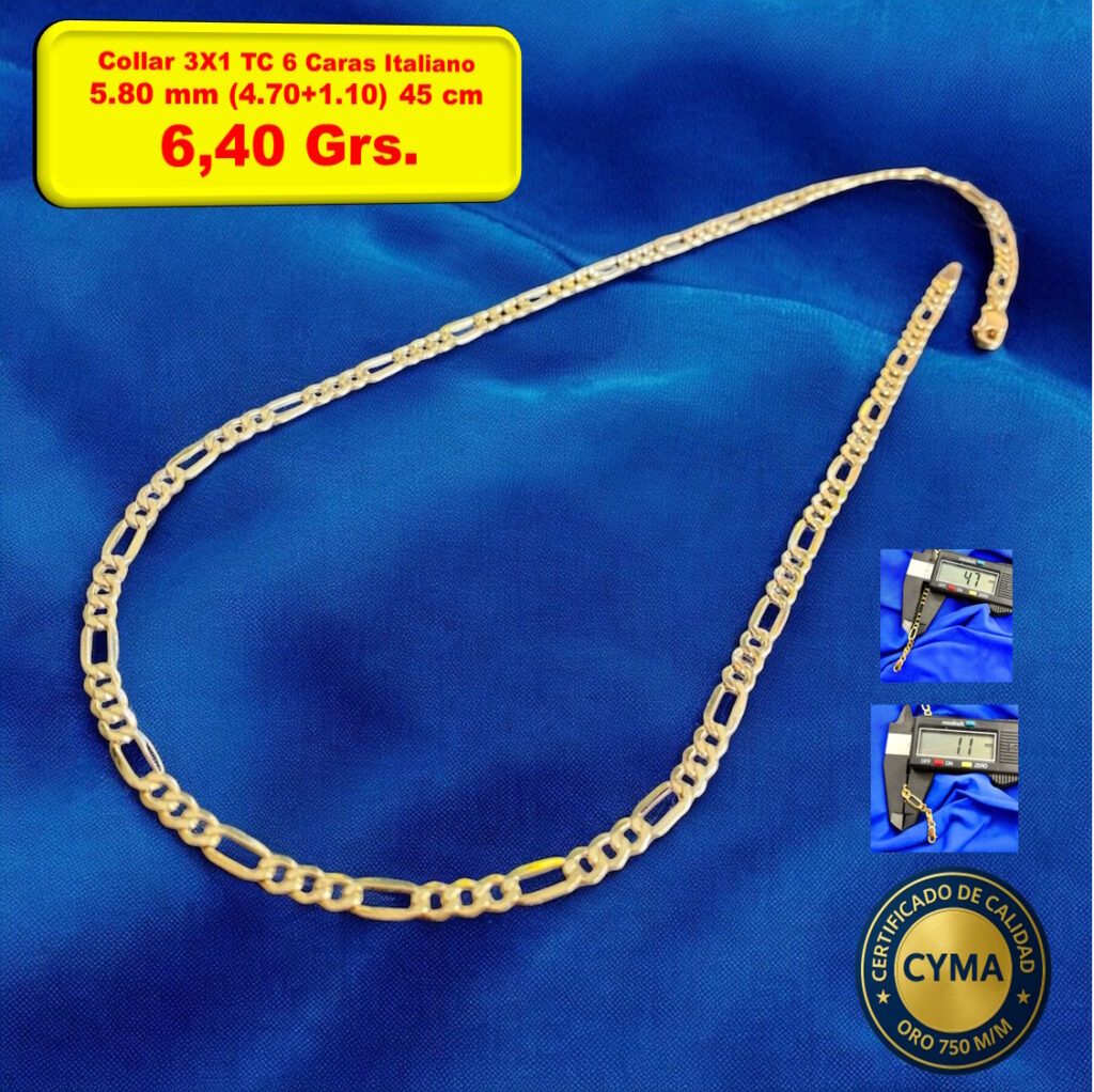 COLLAR BARBADO 6 CARASDesde 1.133,65 € hasta 1.337,13 €Collar Barbado 6 Caras Italiano Grosor: 5.50 mm Oro 18 Kilates