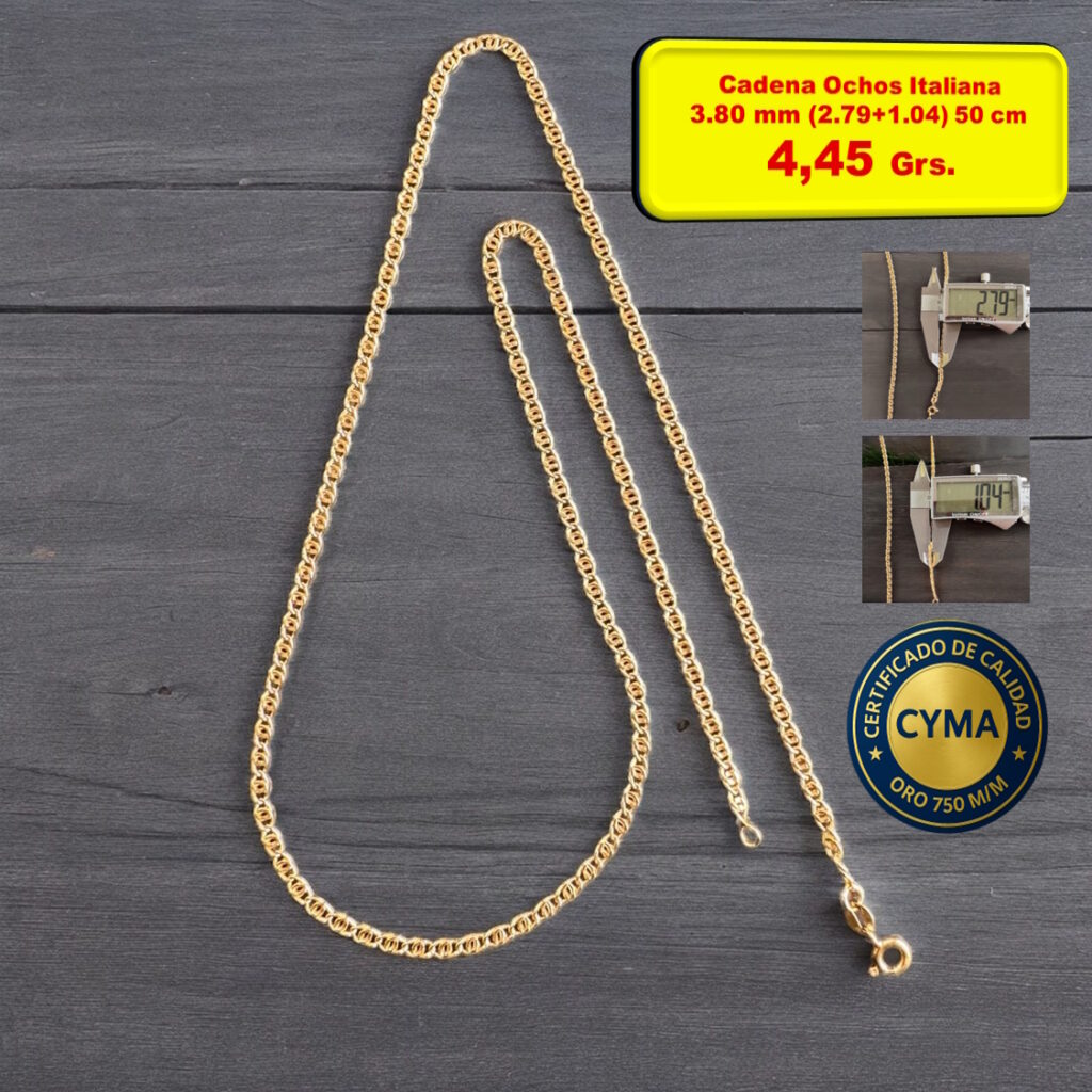 CADENA ANCLA BANANADesde 382,24 € hasta 457,82 €Cadena Ancla Banana Italiana Grosor: 2.50 mm Oro 18 Kilates