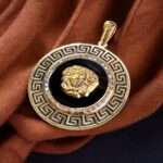 Dúo / Conjunto Cadena Rolo 2.00 de 60 cm y Colgante Medusa con Ónix Oro 18 Kilates