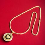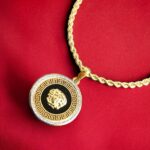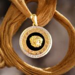 Dúo / Conjunto Collar Cordón de 2.00 mm 50 cm y Colgante Medusa y Ónix 20.00 mm Oro 18 Kilates