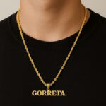 Dúo / Conjunto Collar Cordón Salomónico 4.00 mm y Colgante Nombre con Asa central, Oro 18 Kilates, Elige tu Largo y tu Nombre.