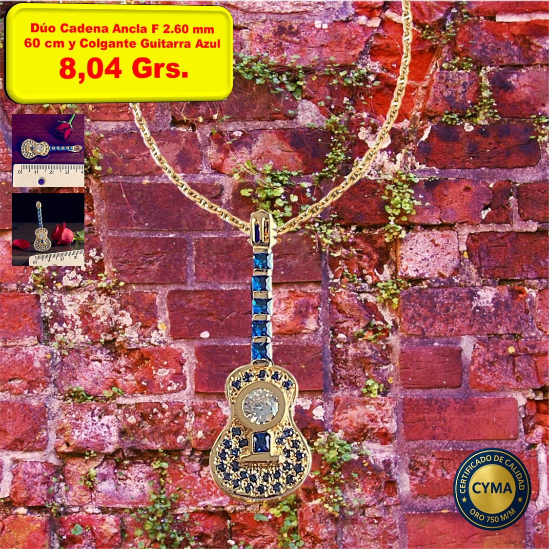 1.168,53 €Dúo / Conjunto Cadena Ancla CD Forzada Italiana 2.60 mm y Colgante Guitarra Circonitas Oro 18 Kilates.