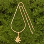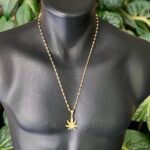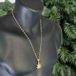 Dúo /Conjunto Collar Ancla Forzada Grosor: 4.00 mm de 60 cm y Colgante Hoja Maciza M. Oro 18 Kilates.