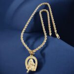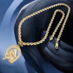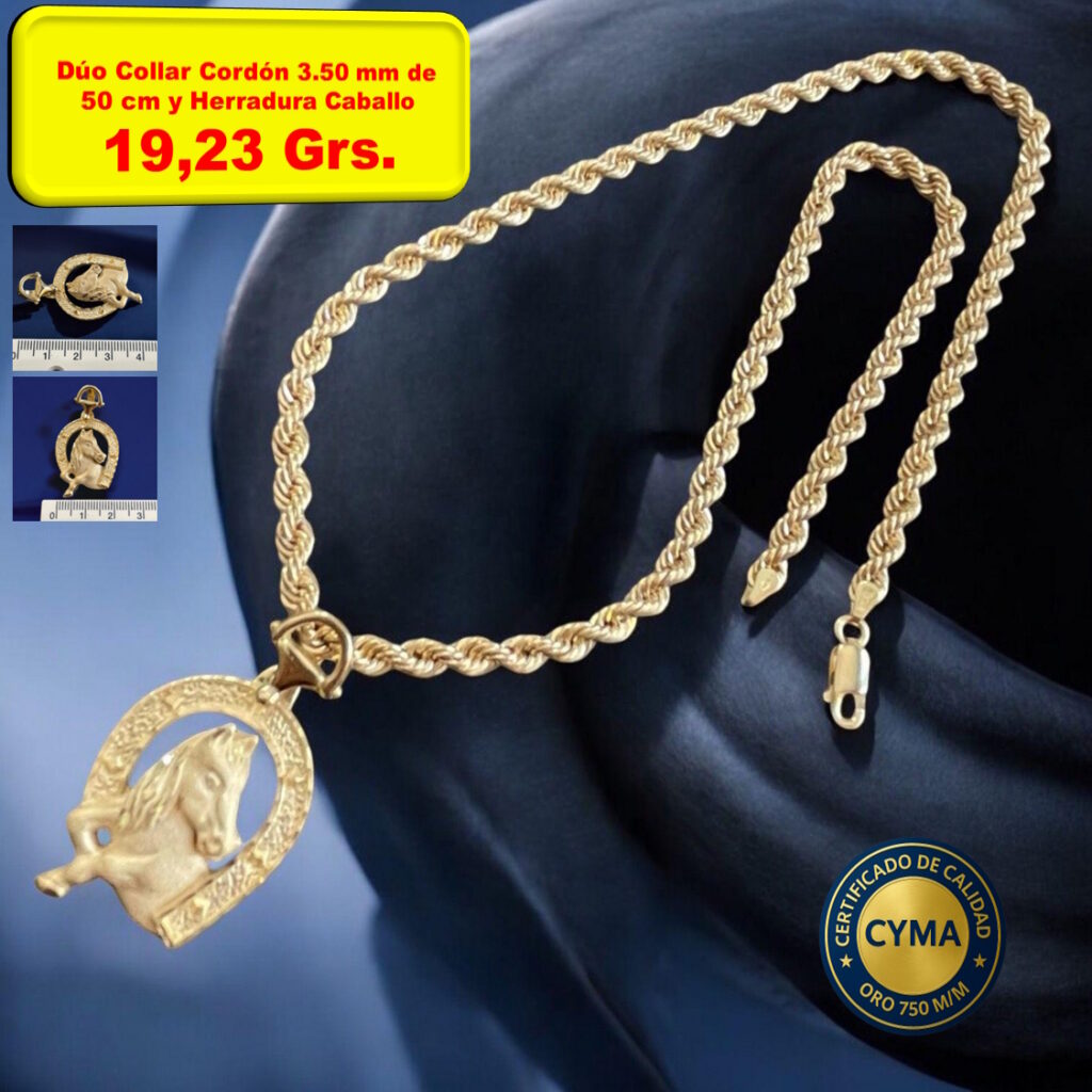 Dúo / Conjunto Collar Cordón Salomónico 3.50 mm y Colgante Herradura Macizo XXL, Oro 18 Kilates