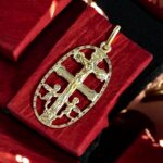 Dúo Cadena Rolo Italiana 2.00 mm y Cruz Caravaca con Cerco Oval XL Oro 18 Kilates.