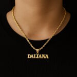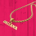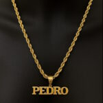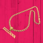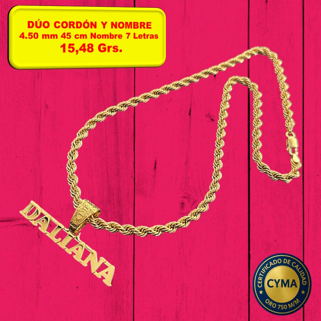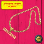 Dúo / Conjunto Collar Cordón Salomónico 4.50 mm y Colgante Nombre con Asa central, Oro 18 Kilates, Elige tu Largo y tu Nombre.