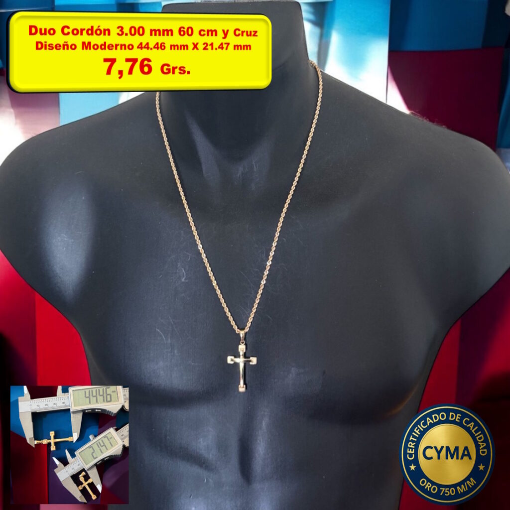 DÚO / CONJUNTO1.165,63 €Dúo / Conjunto Collar Cordón Salomónico 3.00 mm y Cruz Tubular Clásica con Cristo Oro 18 Kilates, Se fabrica en distintos largos.