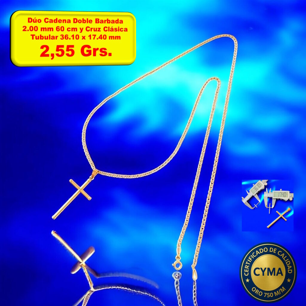 DÚO / CONJUNTO437,03 €Dúo Cadena Doble Barbada 2.00 mm y Cruz rectangular con Cristo Oro 18 Kilates. Opción: Conjunto