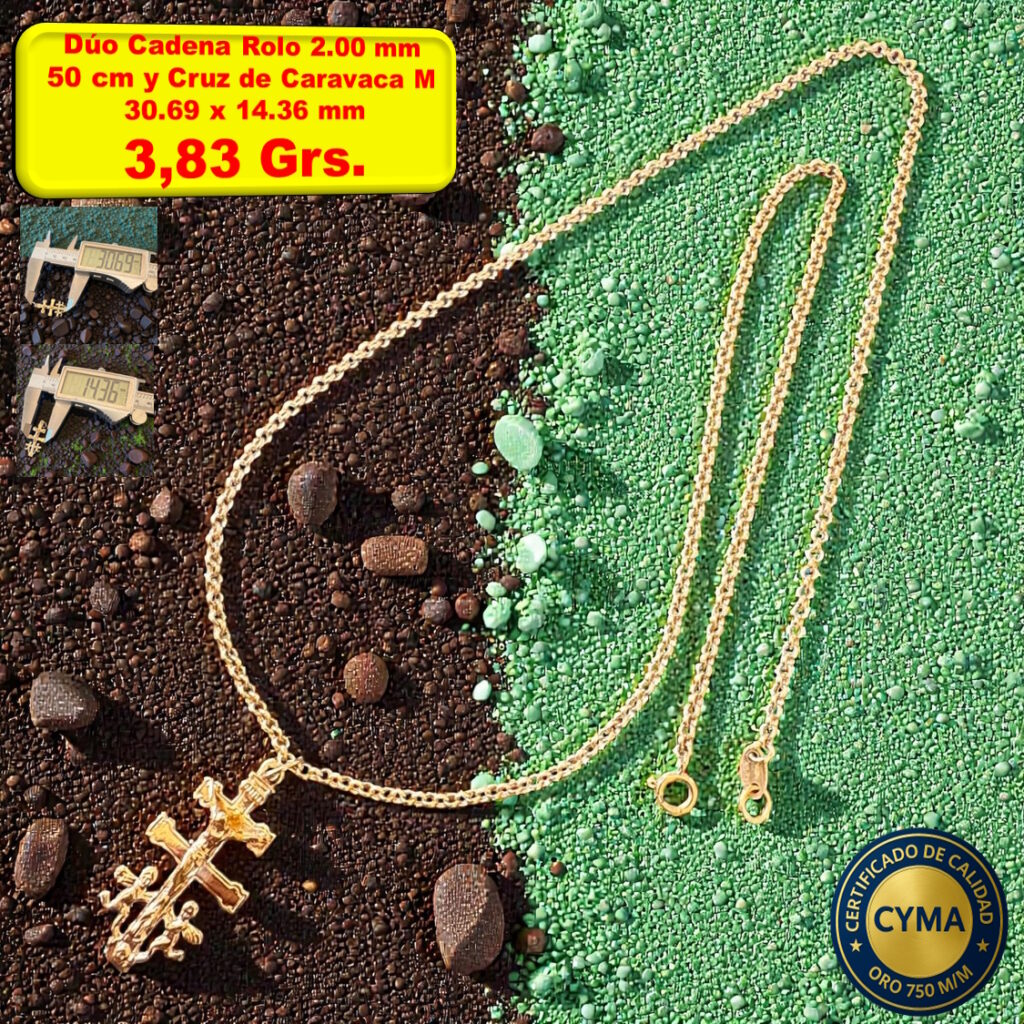 DÚO / CONJUNTO592,99 €Dúo Cadena Bilbao alargado 2.00 mm y Cruz de la Legión M Oro 18 Kilates. Opciones: Otro Largo - Grosor - Modelo