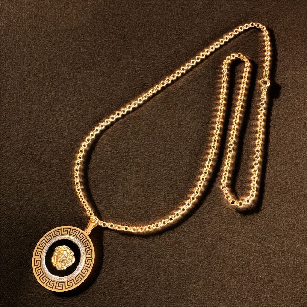 DÚO / CONJUNTO811,00 €Dúo / Conjunto Cadena Rolo 2.00 de 60 cm y Colgante Medusa con Ónix Oro 18 Kilates