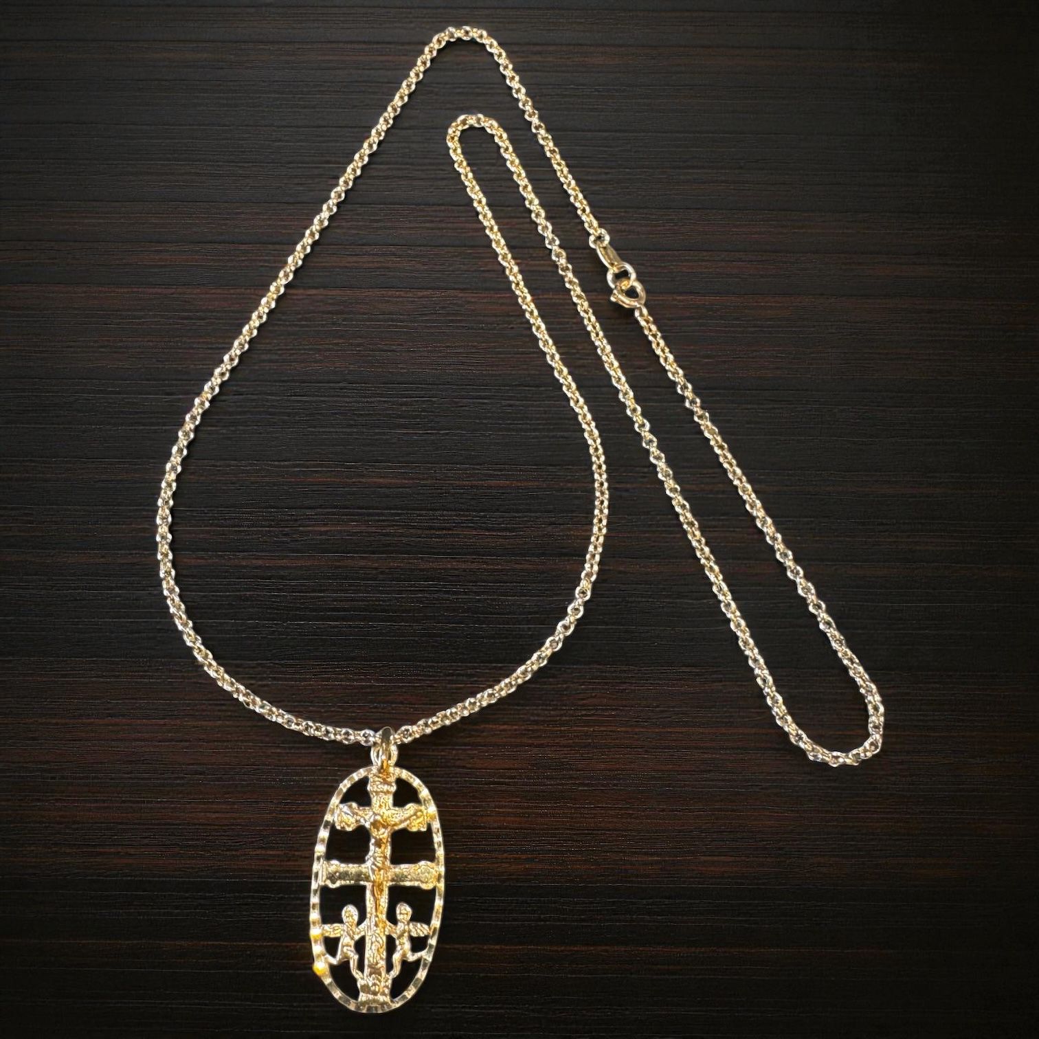687,46 €Dúo Cadena Rolo Italiana 2.00 mm y Cruz Caravaca con Cerco Oval XL Oro 18 Kilates.