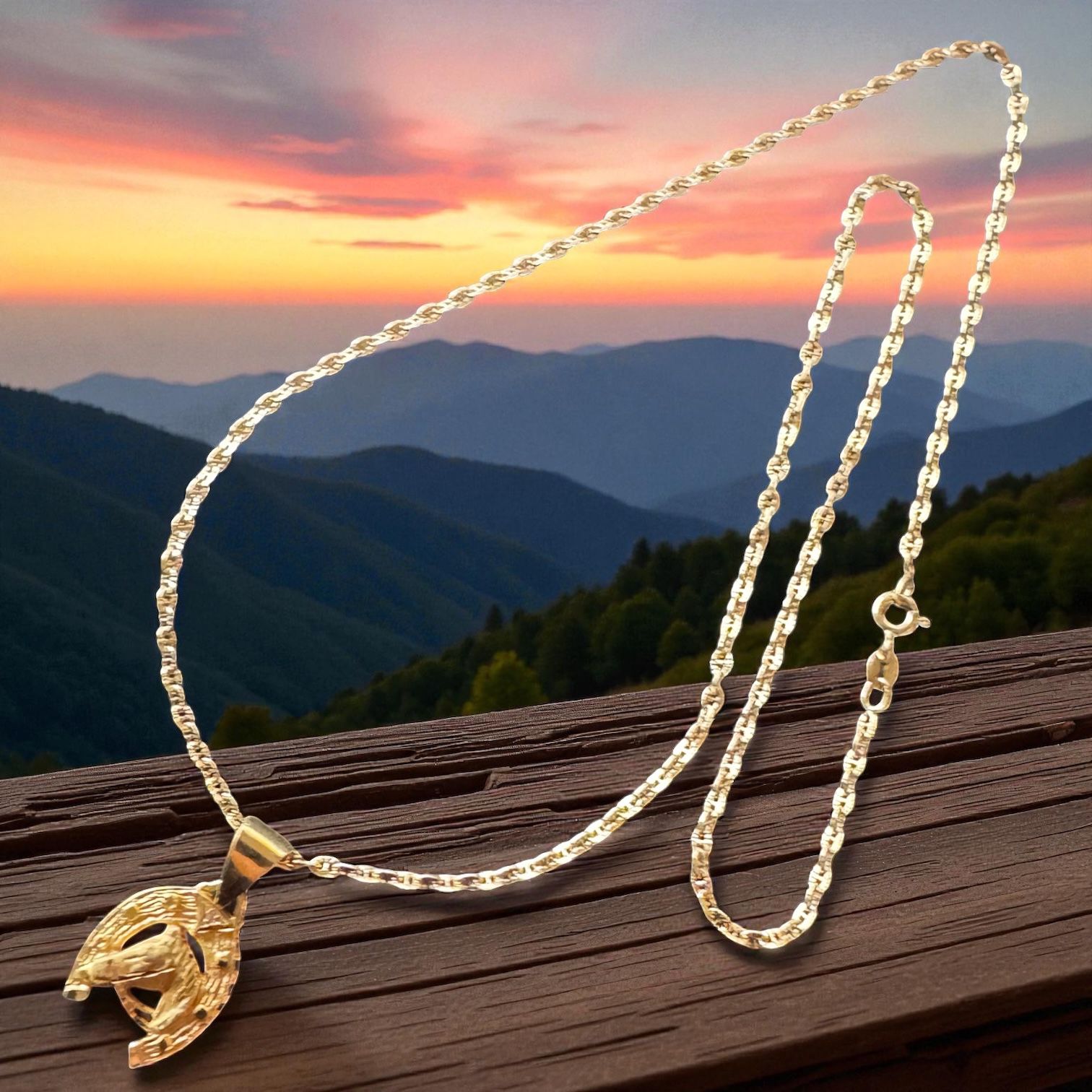 1.036,27 €Dúo / Conjunto Collar Ancla Forzada Rayos 2.50 mm y Colgante Herradura y Caballo Macizo M Oro 18 Kilates.