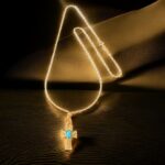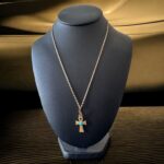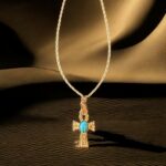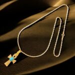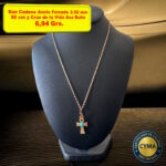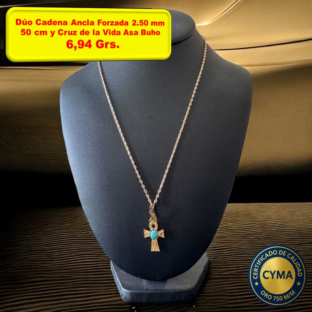 Dúo / Conjunto Cadena Ancla Forzada Italiana 2.50 mm y Cruz de la Vida Maciza con Turquesa Oro 18 Kilates, Se fabrica en distintos largos.
