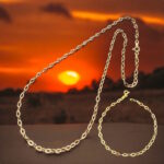 Dúo / Conjunto de Collar y Pulsera Rayos Eslabón Ovalado Italiano Grosor: 2.50 mm Oro 18 Kilates
