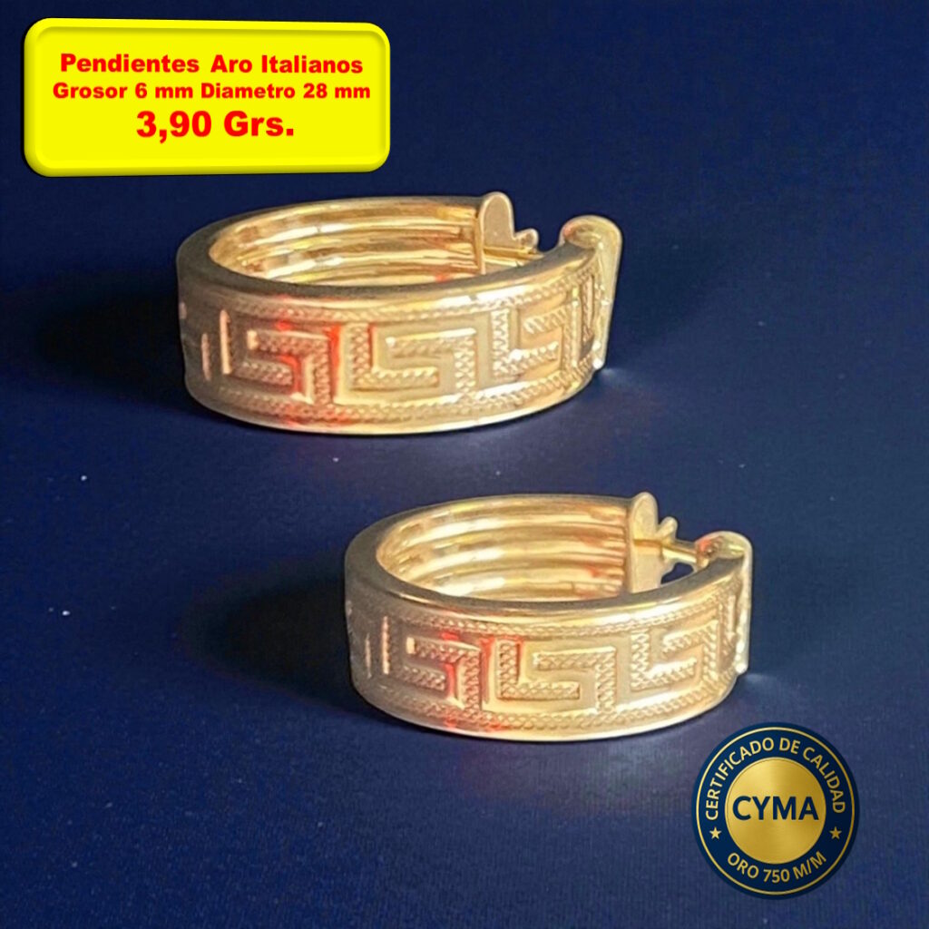 PENDIENTES ARO ITALIANOSDesde 436,02 € hasta 857,51 €Pendiente Aro Italiano con Greca Grosor 8.00 mm Oro 18 Kilates