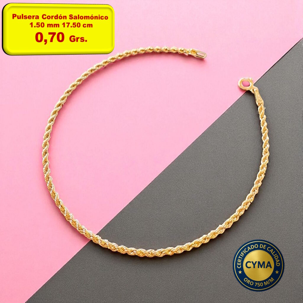 PULSERA CORDÓN SALOMÓNICO440,38 €Pulsera Cordón Salomónico Grosor : 3.50 mm Oro 18 Kilates con Cierre de Mosquetón