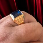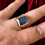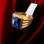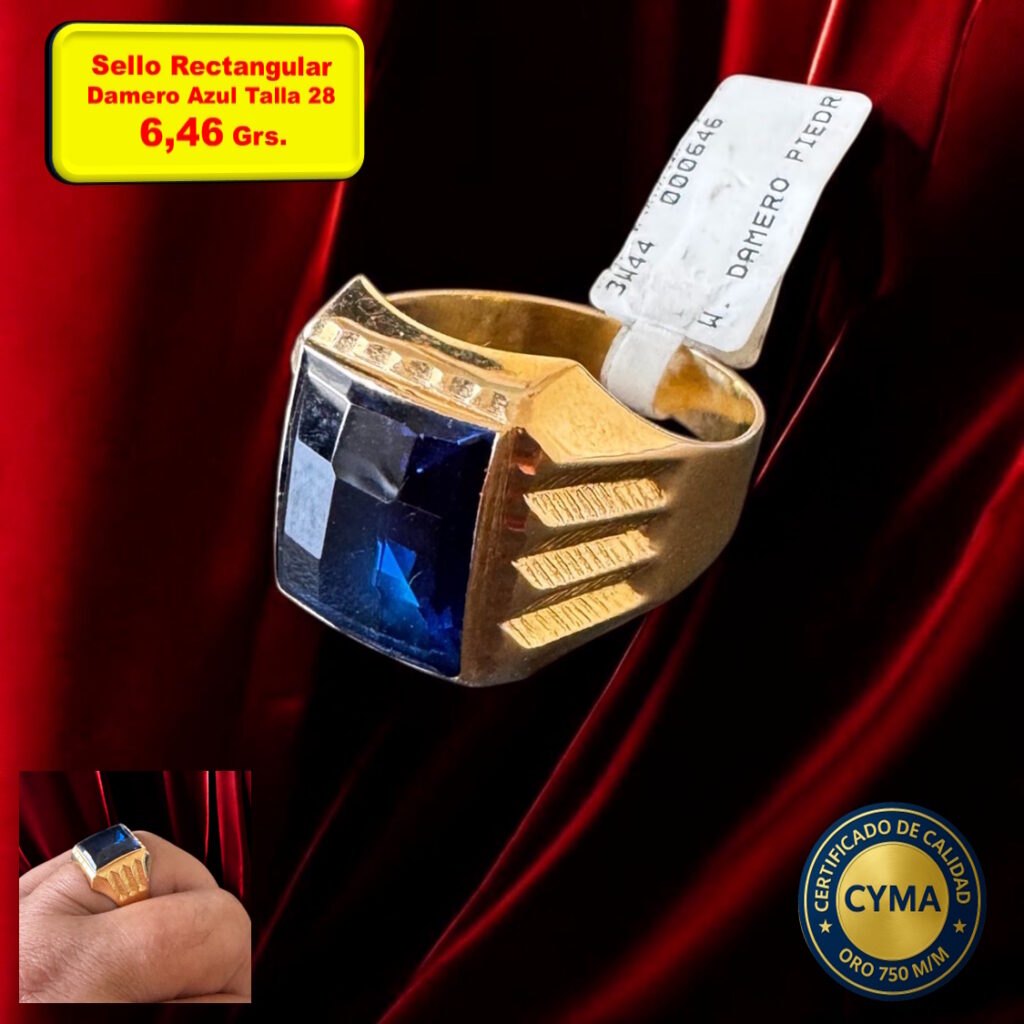 Sello Rectangular Damero Azul Oro 18 Kilates