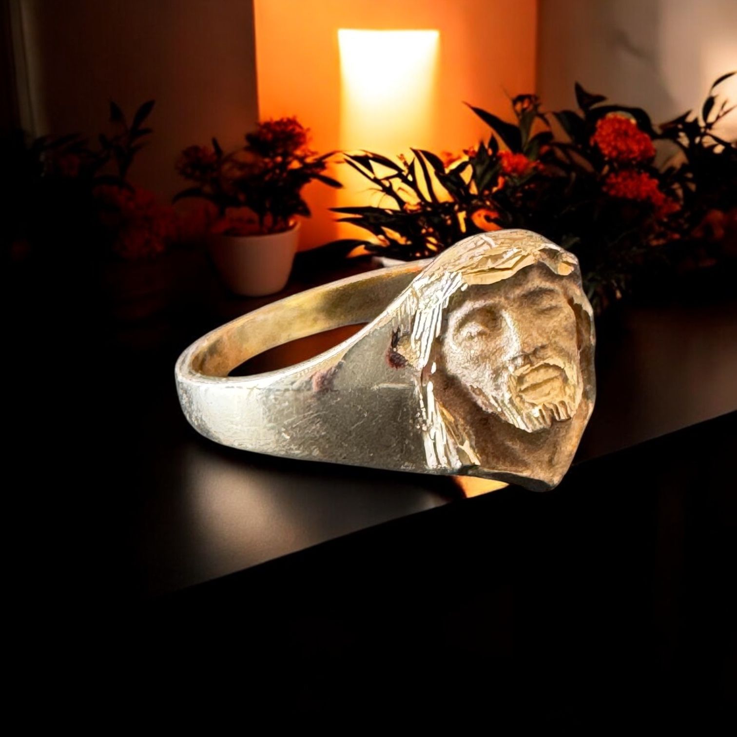 864,77 €Sello Cara de Cristo Macizo Relieve Oro 18 Kilates