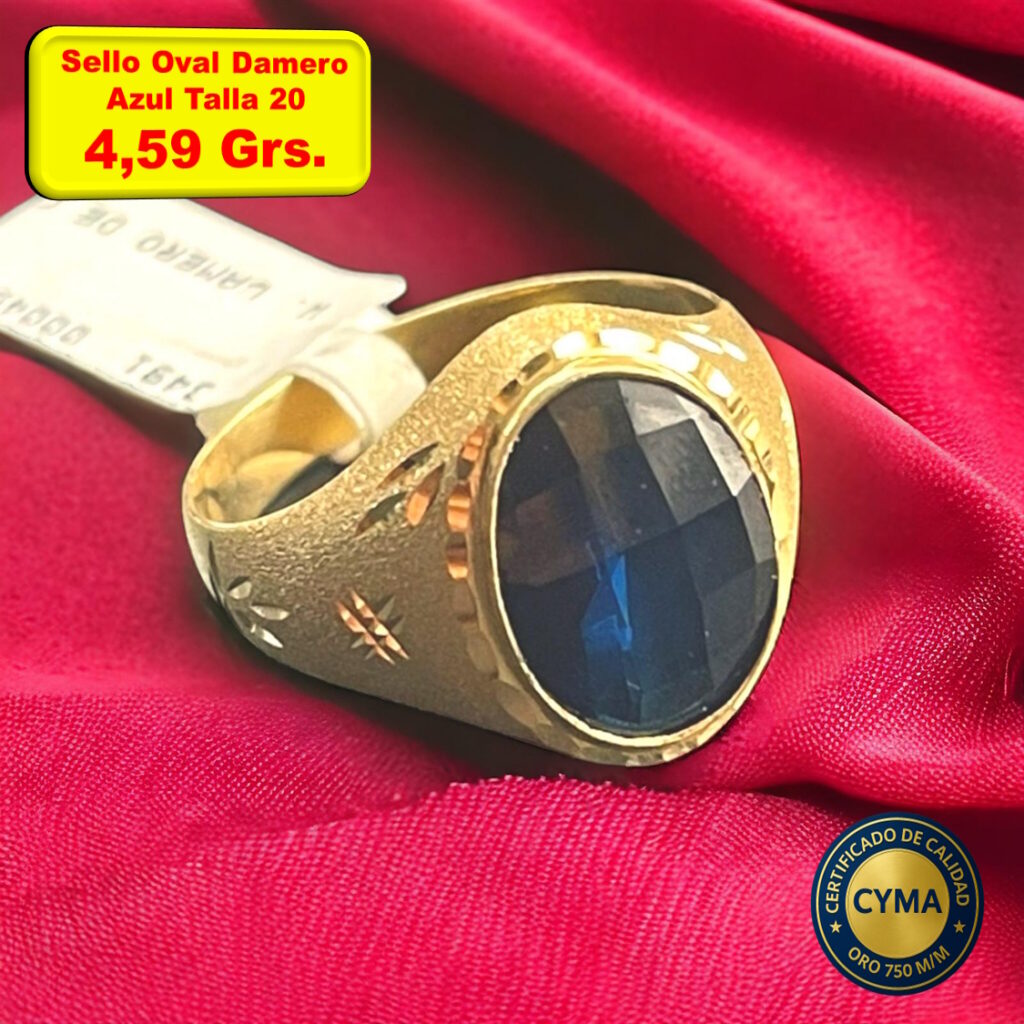 Sello Damero Oval con Piedra Oro 18 Kilates.