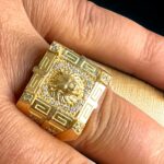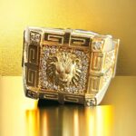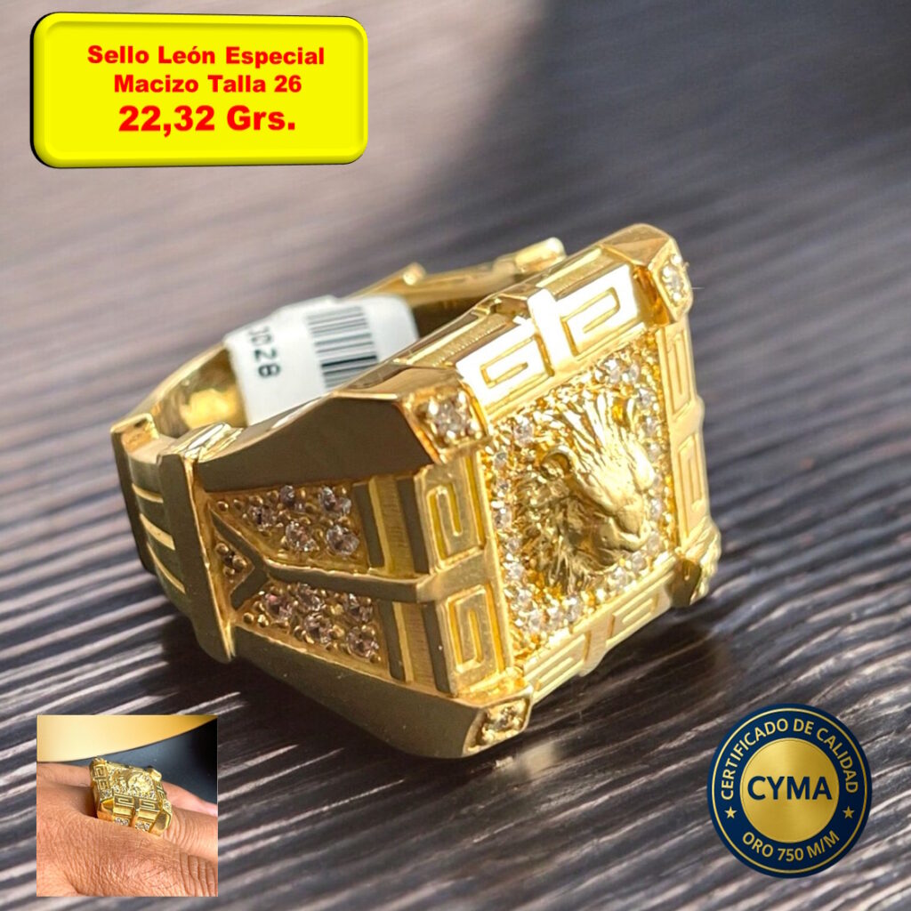 Sello Especial Cuadrado León y Circonitas Macizo Oro 18 Kilates