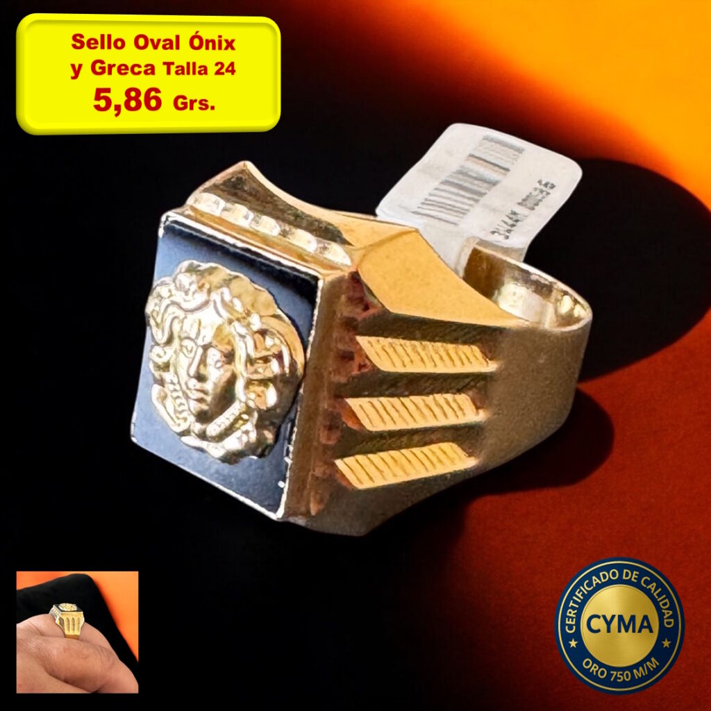 Desde 652,58 € hasta 688,91 €Sello Oval con Ónix, Medusa Y Greca Oro 18 Kilates