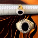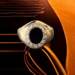 Sello Oval Ónix con Orla de Circonitas y Brazo Grabado Oro 18 Kilates, con Ónix