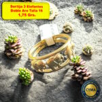 Sortija 3 Elefantes con Doble Aro, Oro 18 Kilates