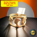 Sortija 3 faraones con Doble Aro, Oro 18 Kilates